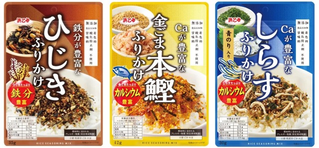 『鉄分が豊富なひじきふりかけ・Caが豊富な金ごま本鰹ふりかけ・Caが豊富なしらすふりかけ』
