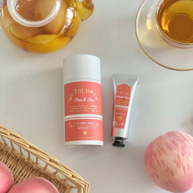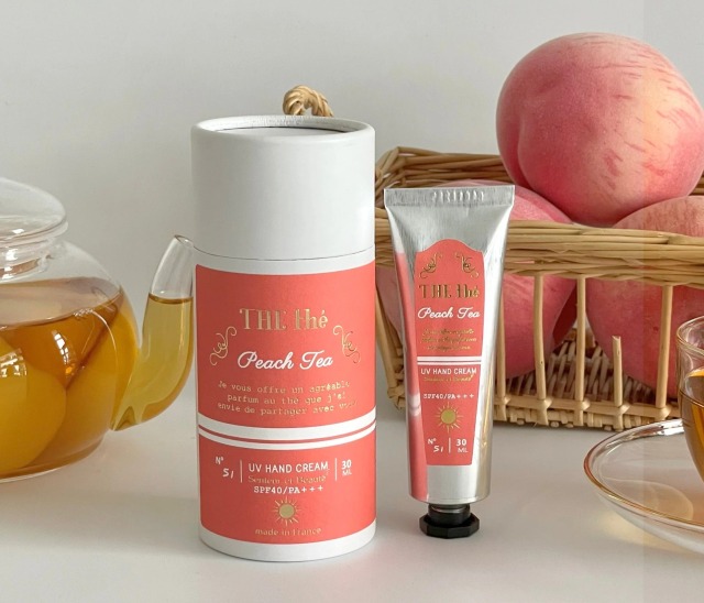 フランス発のティーフレグランスブランド『サンタール・エ・ボーテ ザ・ティー』より、“ピーチティー”シリーズのUVハンドクリームです。
